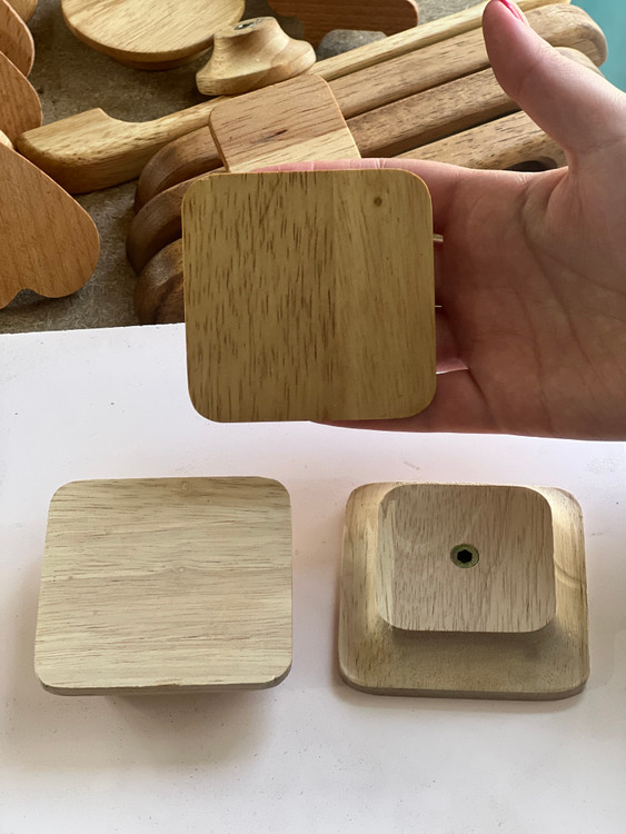 ما انواع دستگیرههای کمد و کابینت رو داریم، چه دوپیچ باشن چه تک پیچ. جنسشون هم از چوب رابروود(که بهش راش سفید هم میگن) هست. میتونید هم مدل رنگ شده رو انتخاب کنید، هم مدل خام که خودتون رنگش کنید.